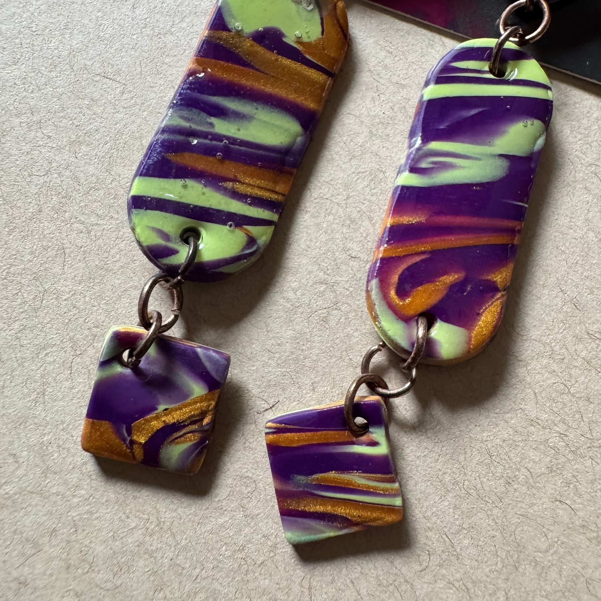 🧿 Material: Hand-marbled polymer clay in deep forest green, lime, ochre, and earthy shimmer
