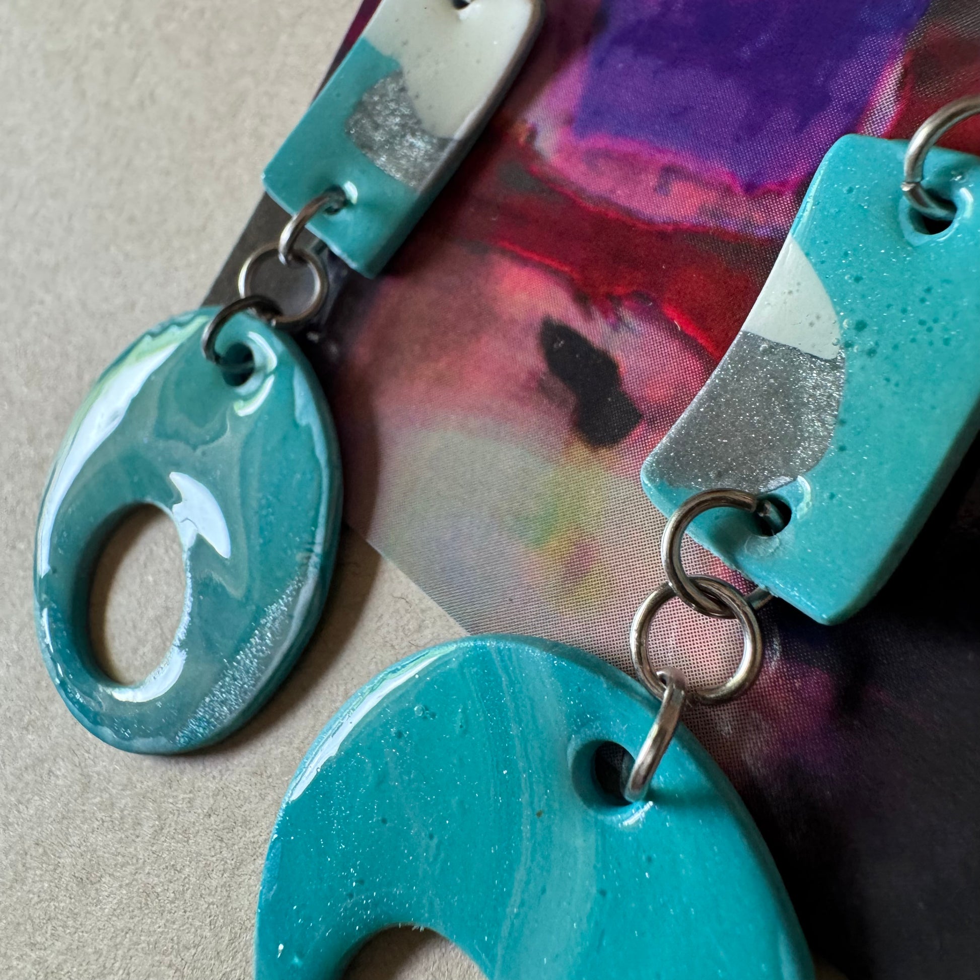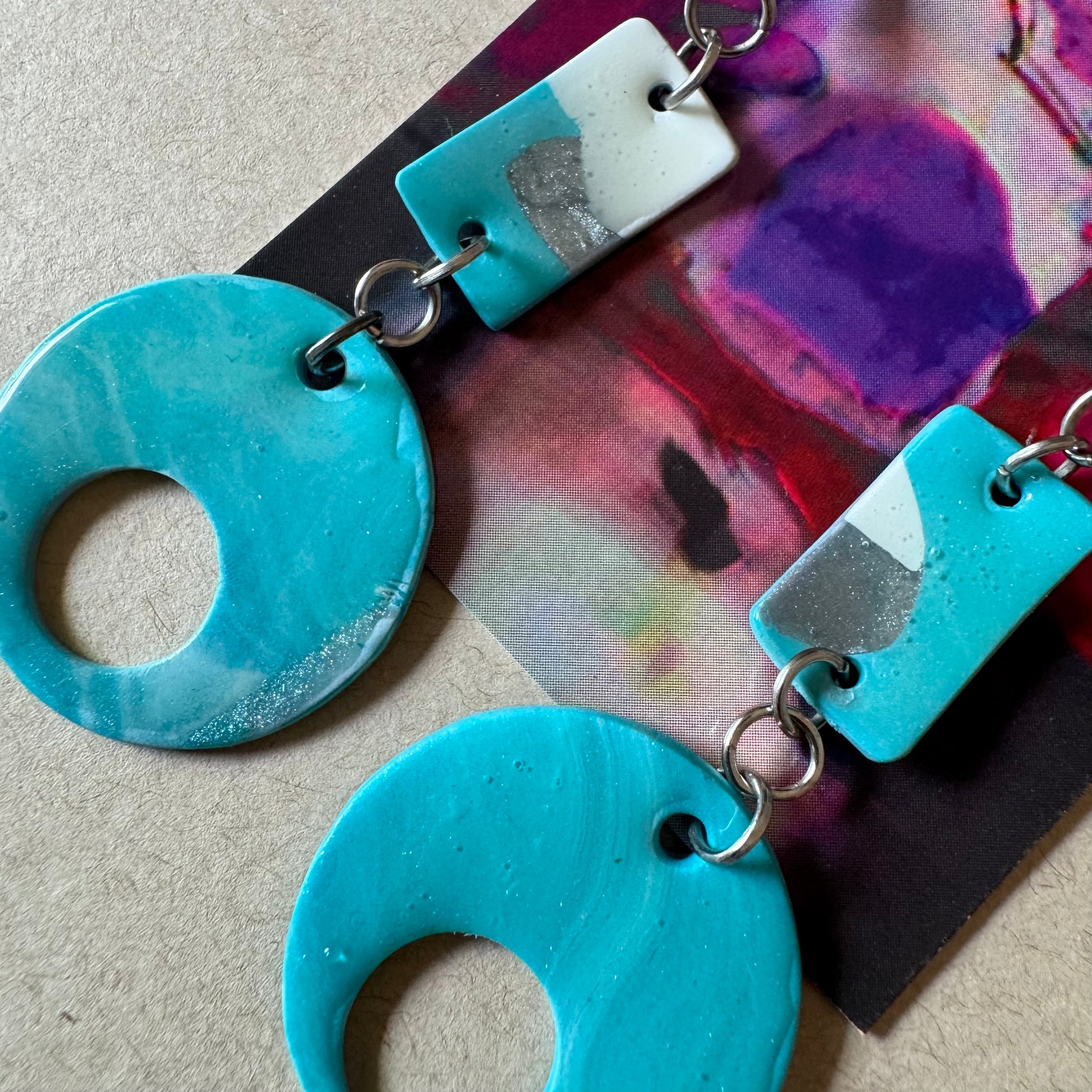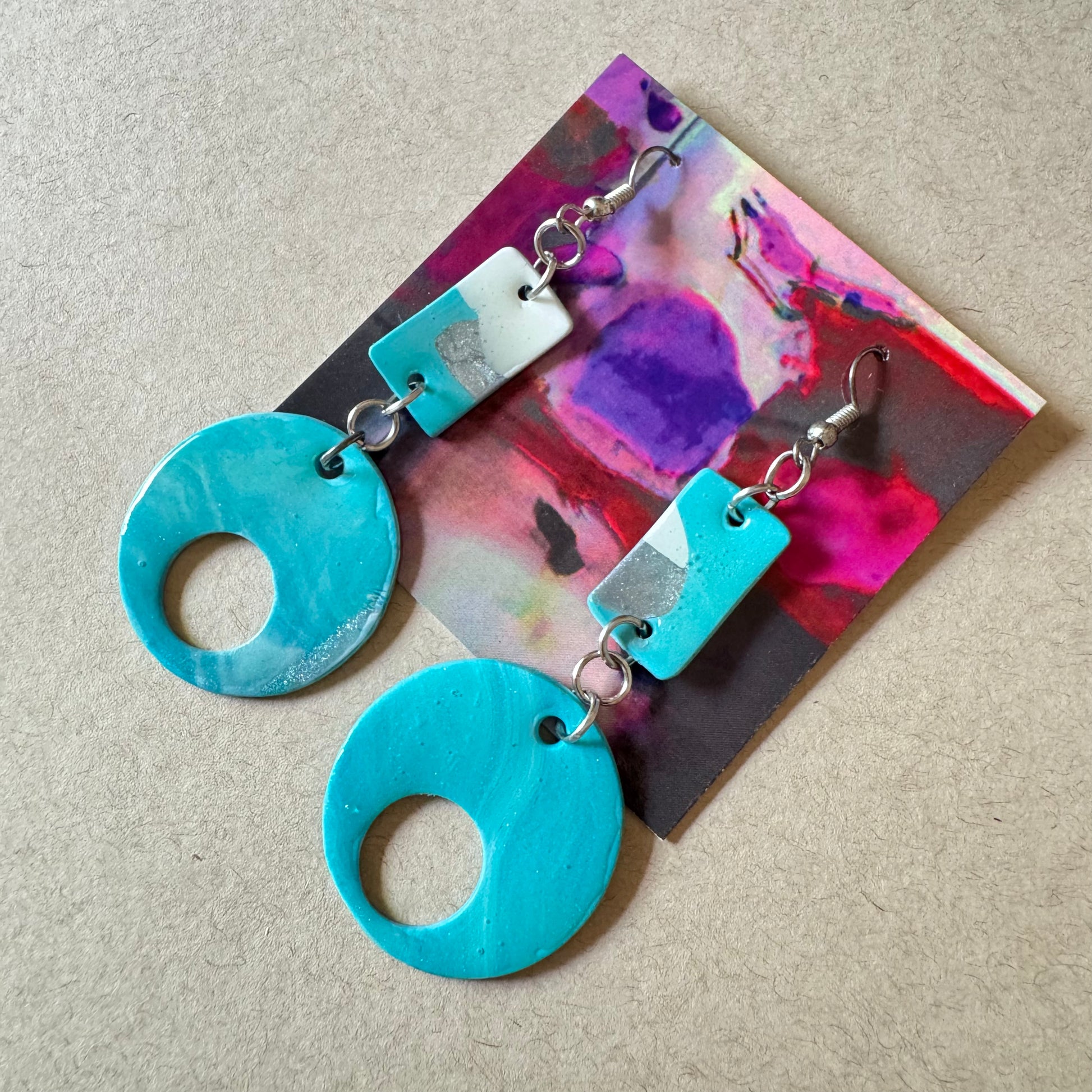 🧿 Material: Hand-marbled polymer clay in turquoise, white, and silver with clean geometric cuts
