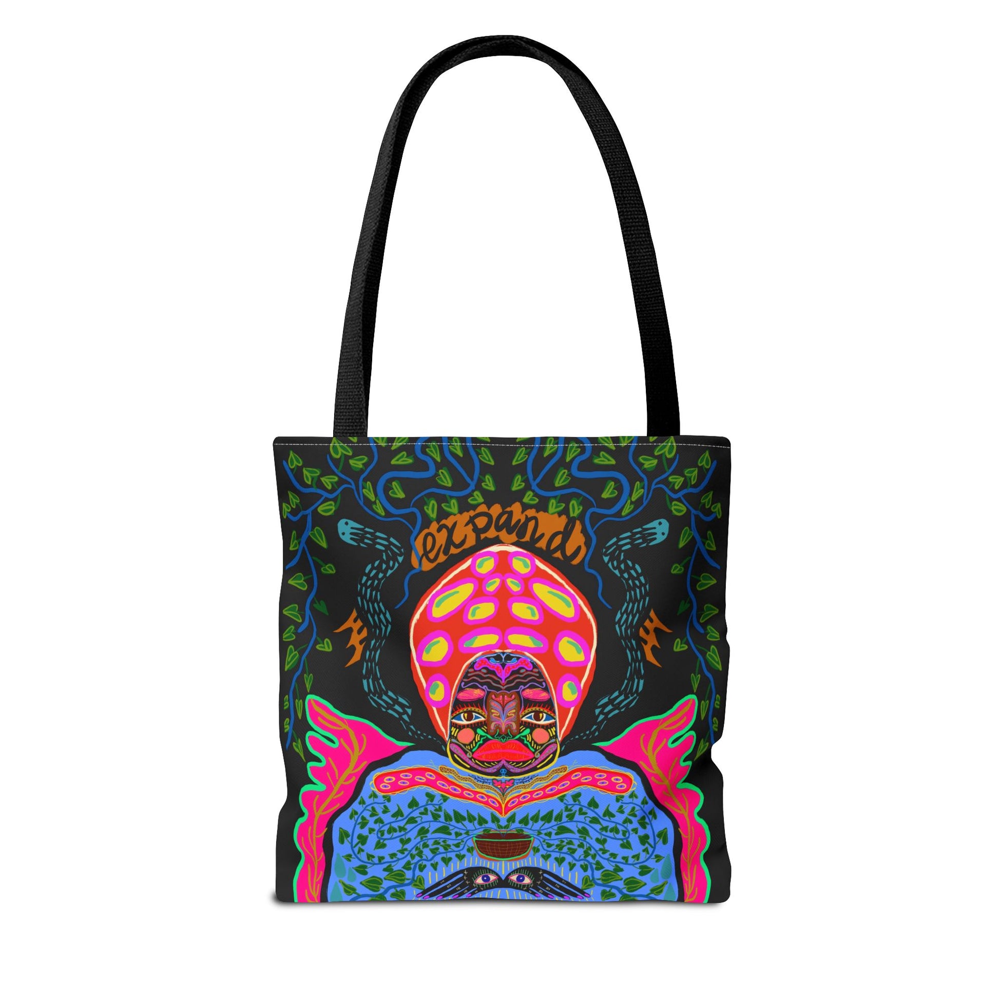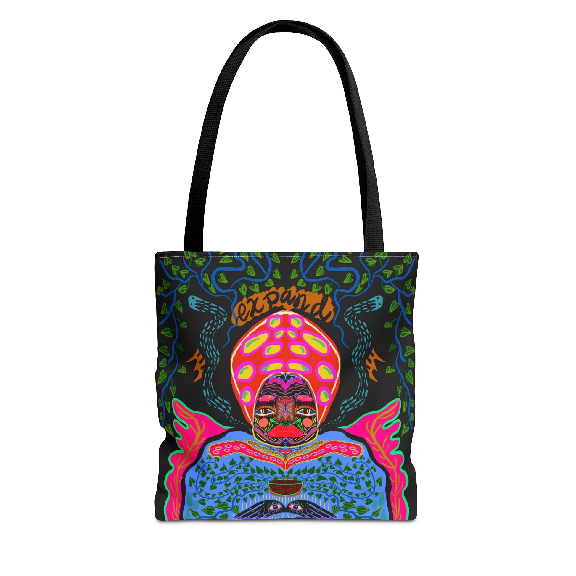 Custom-printed tote bag. Made with spun polyester, these bags feature double-stitched seams, cotton webbing straps, and nonwoven laminate lining for high-end durability. Your all-over print is created with dye sublimation for high end visuals.