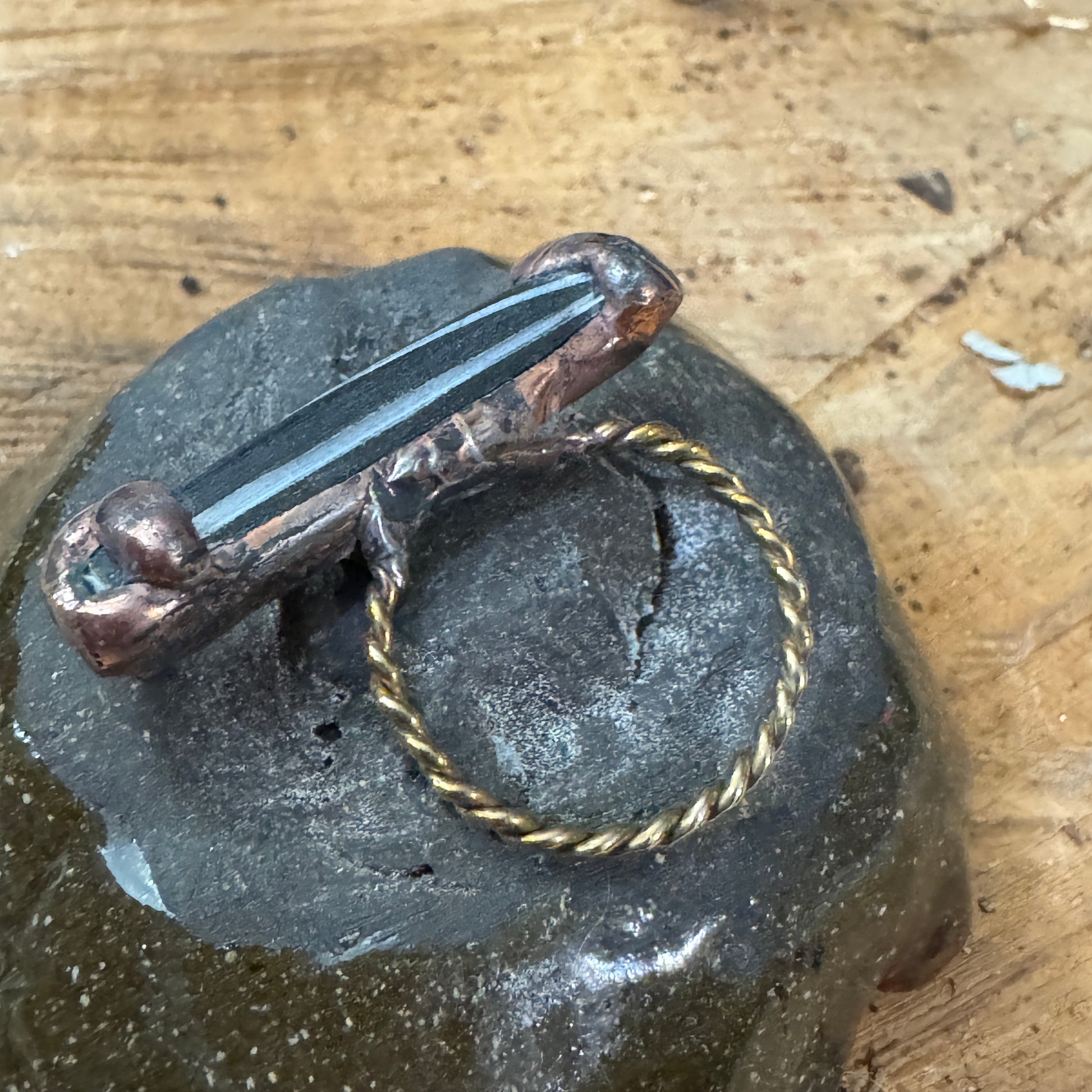 This piece is made with pewter (soft solder), natural materials, and raw elements, and it will develop a patina over time—that’s part of its magic. Tarnishing is completely normal. The darkening and shifts in tone are a living surface, shaped by touch, air, and time.