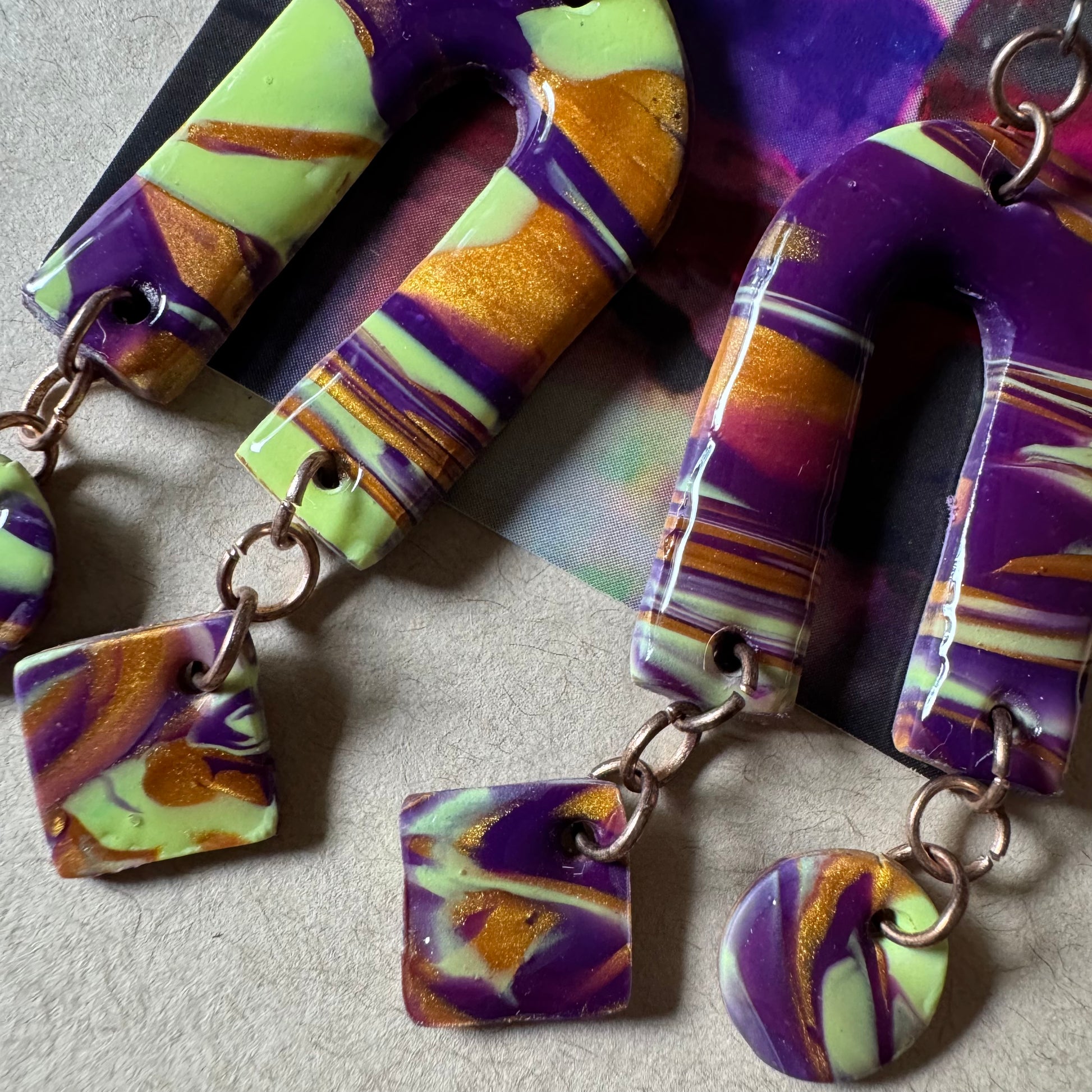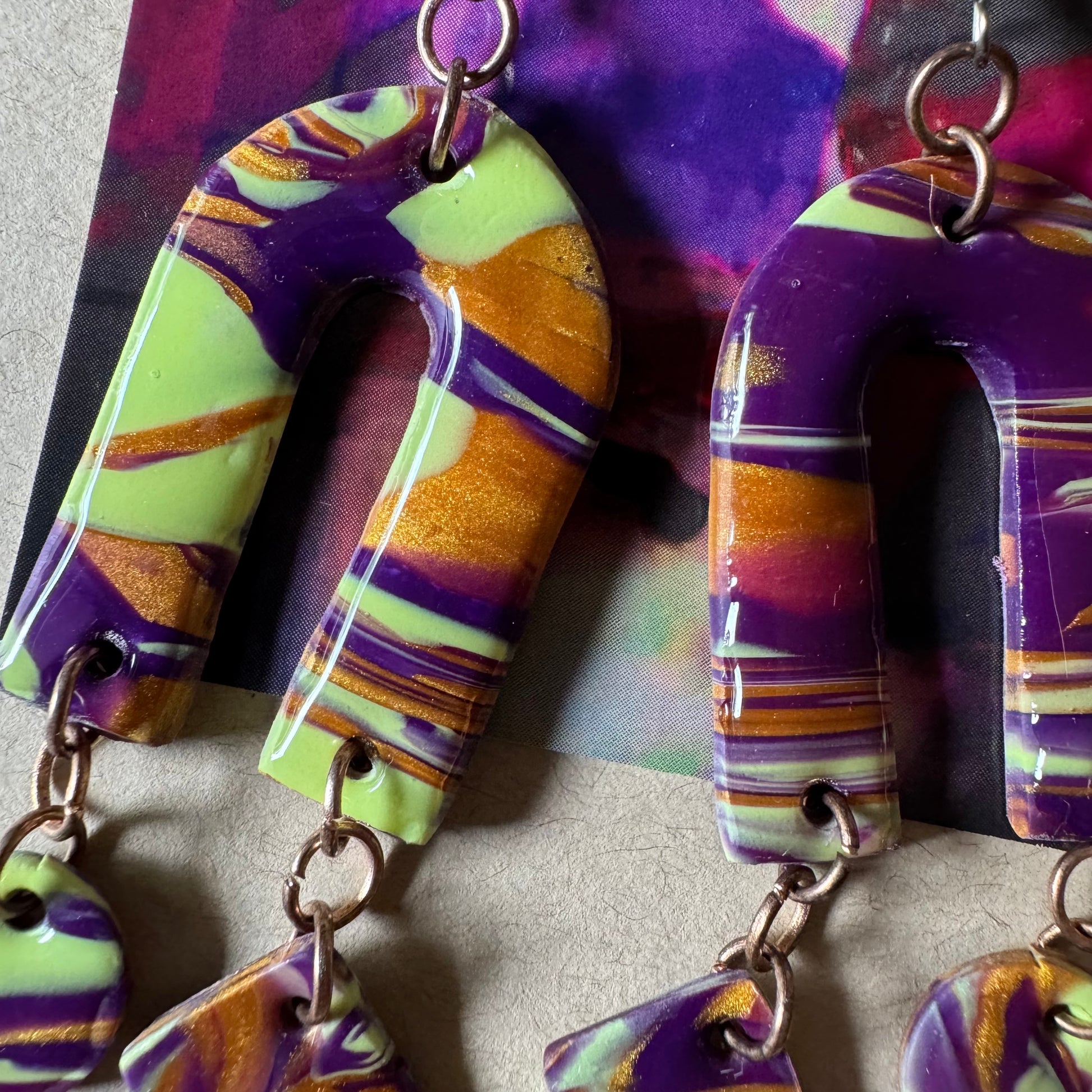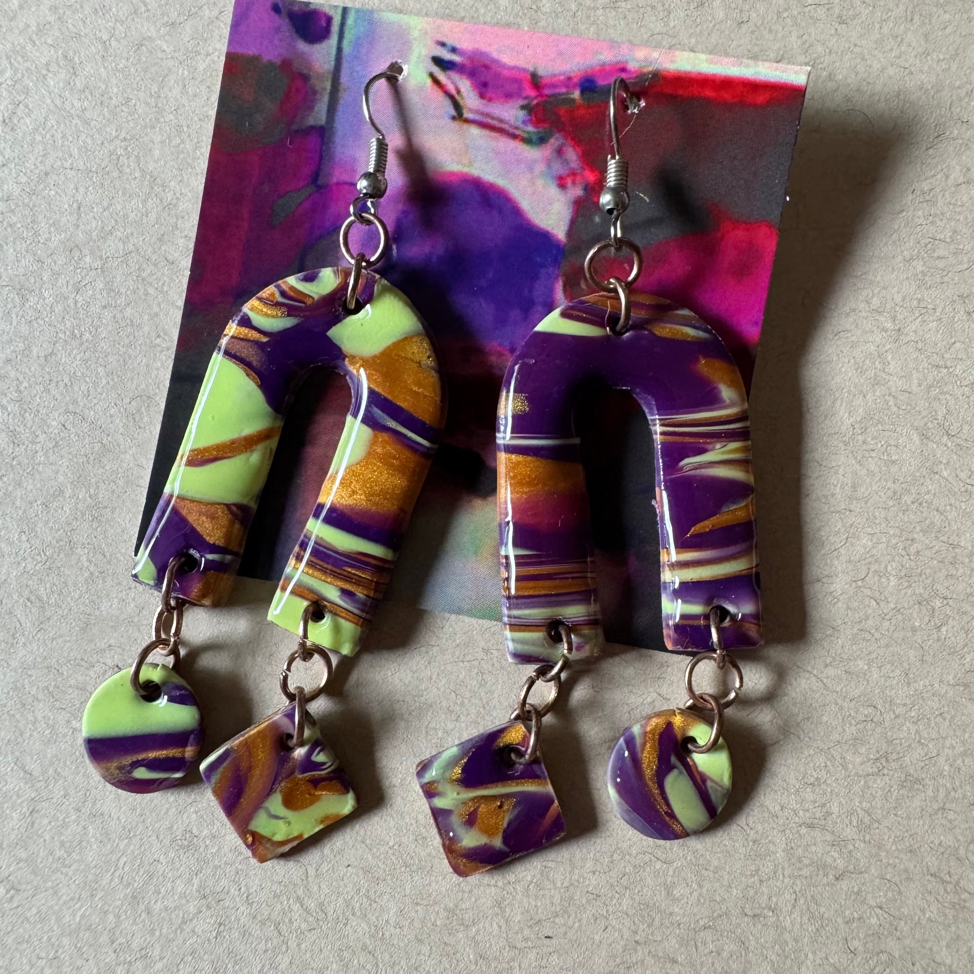 Hielo Vivo captures the feeling of frozen movement—like cracked ice shifting under sunlight. These 3.5-inch earrings glisten in pale blues, cool purples, and soft greens, offering calm with a current. Sculptural, smooth, and unmistakably alive.