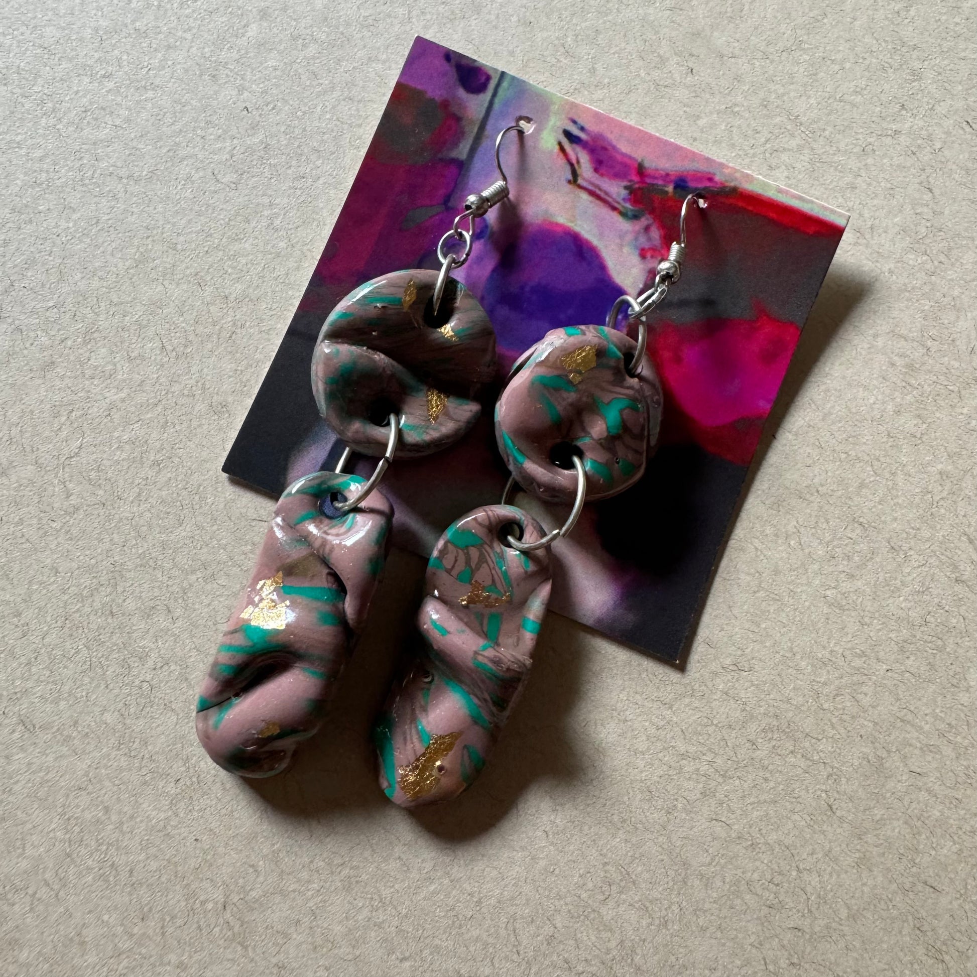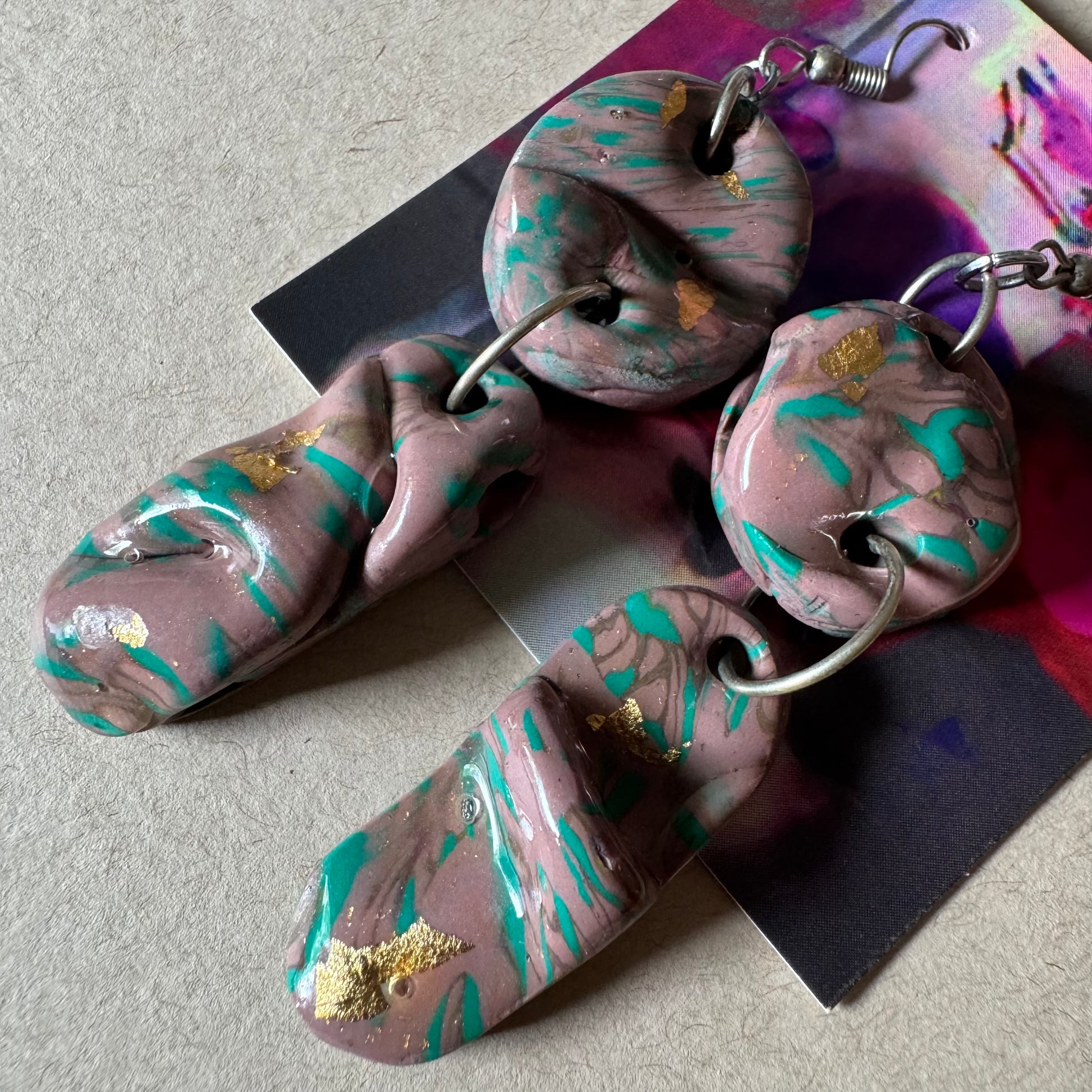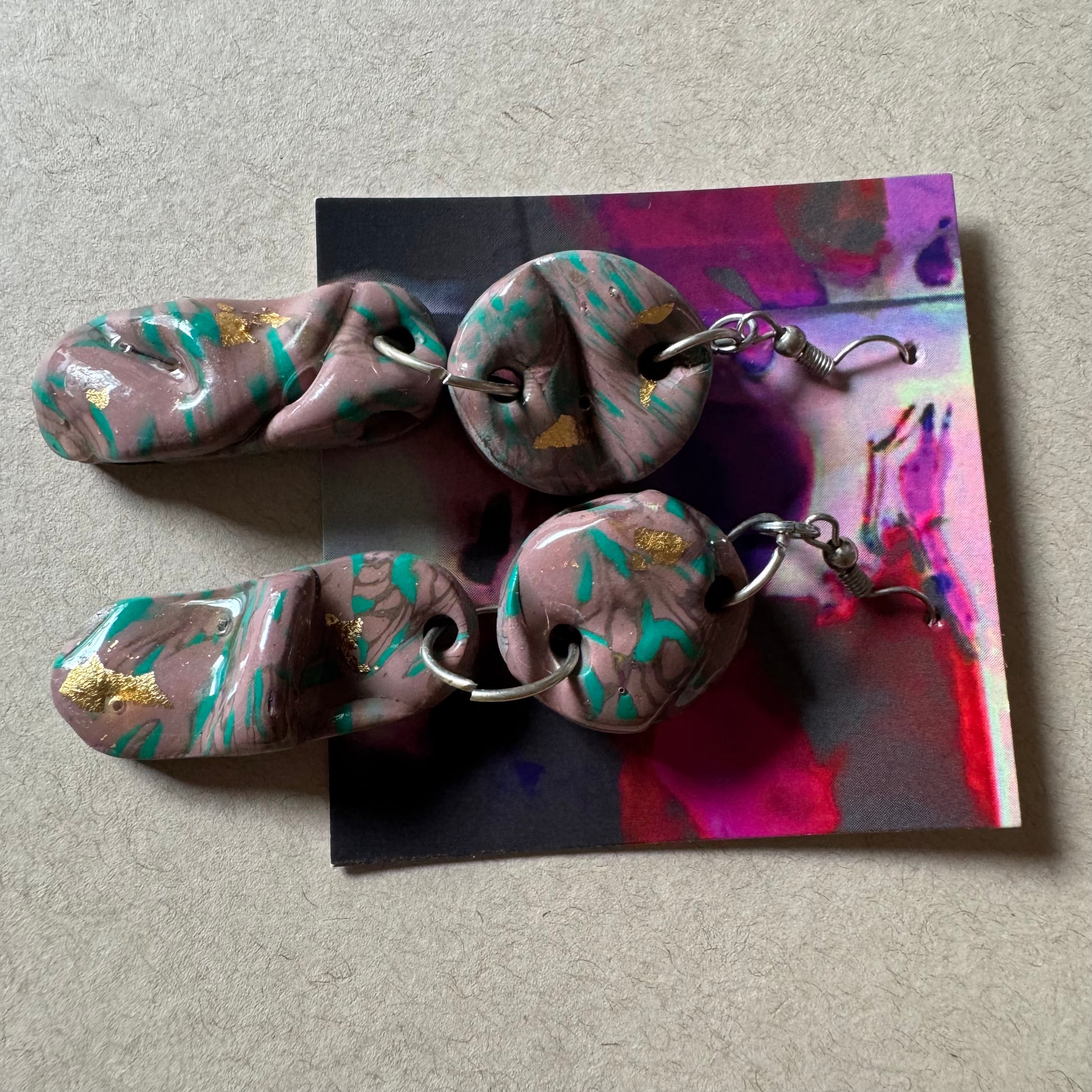 🧿 Material: Hand-marbled polymer clay in golden yellow, vibrant green, and soft metallic accents