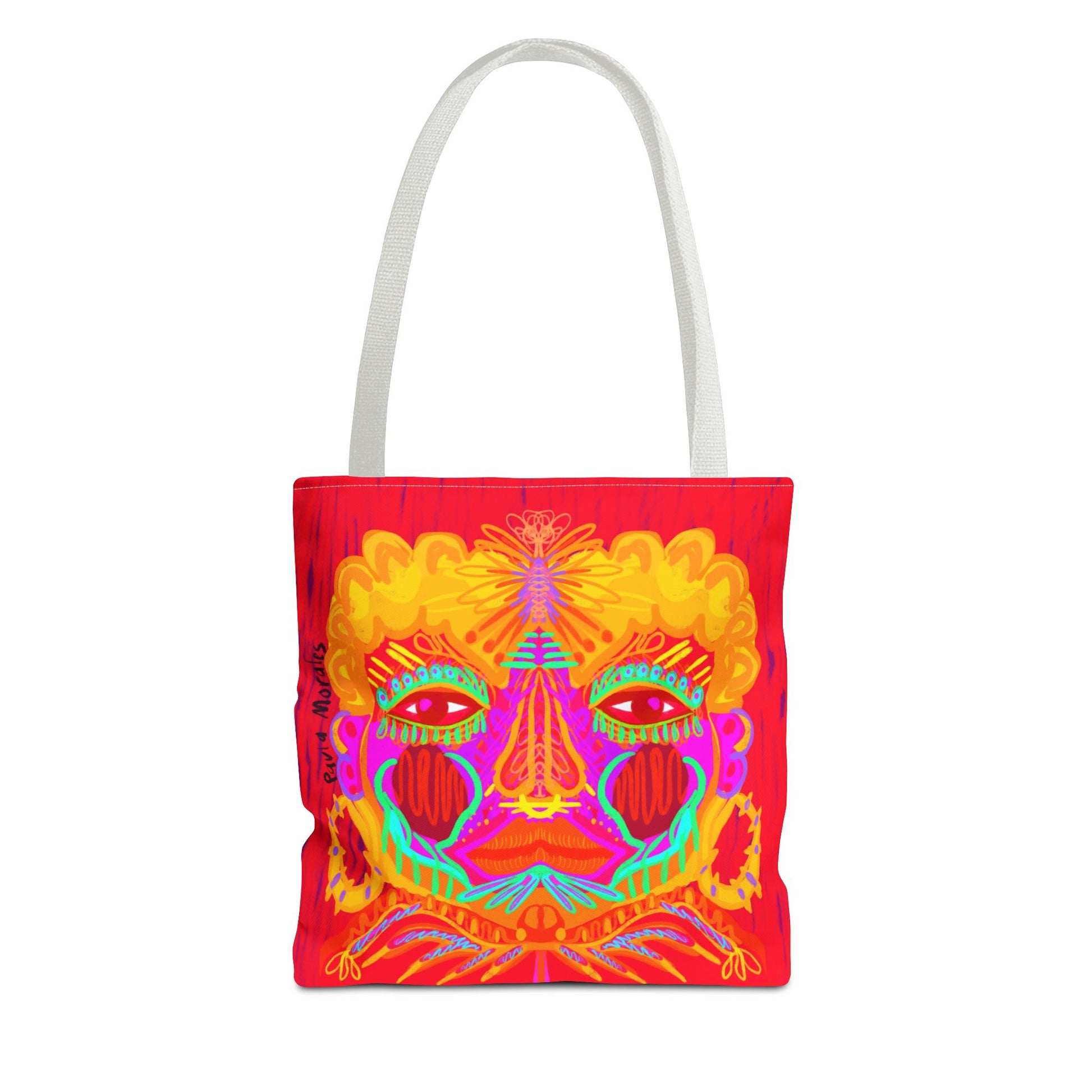 Featuring a vibrant and bold design by Paula Morales, this tote bag captures the essence of radiant energy and intricate beauty. Perfect for those who embrace boldness and creativity in their daily lives. Durable and spacious, it’s ideal for carrying your essentials while making a statement.