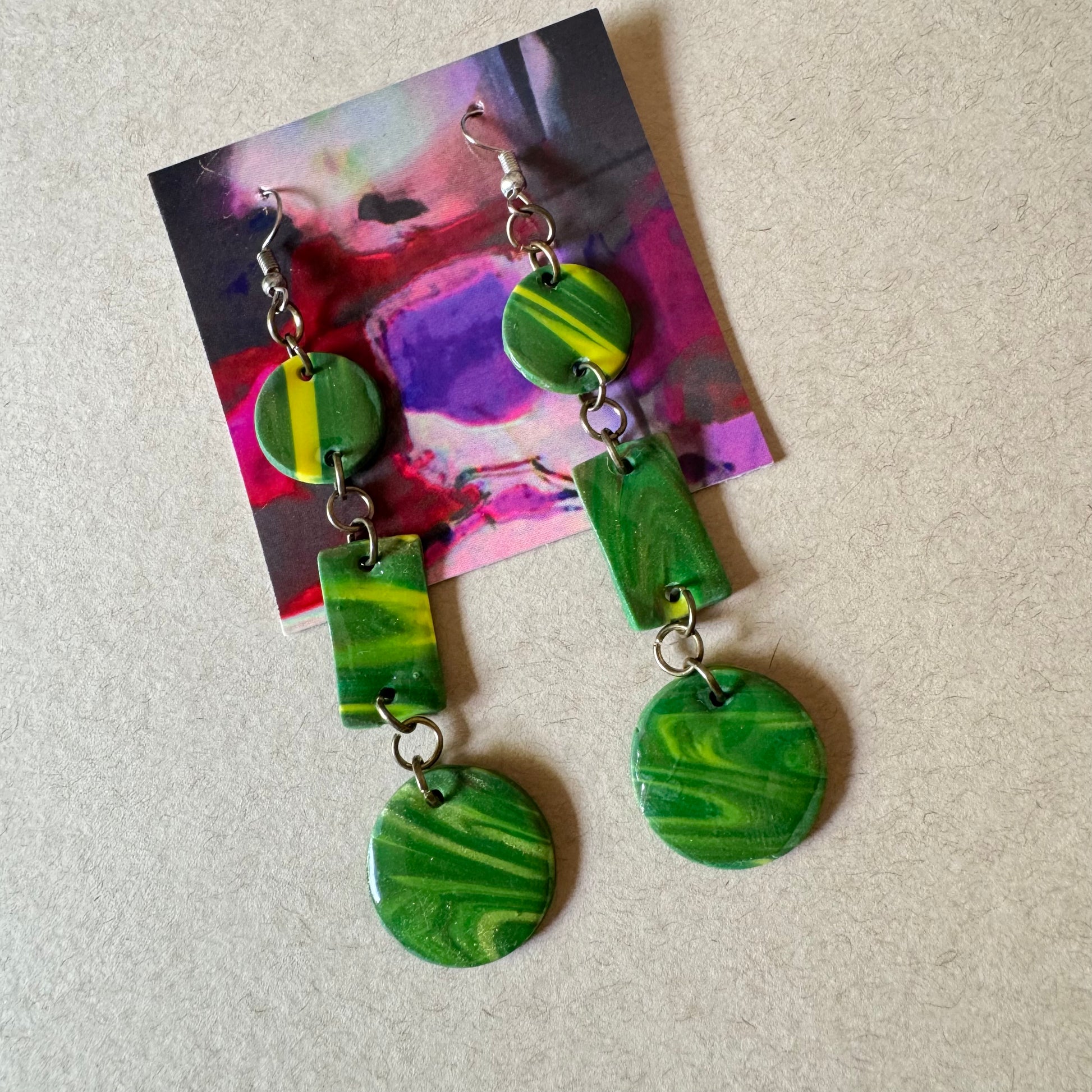 🧿 Material: Hand-marbled polymer clay in vibrant jungle green, moss, and yellow ochre