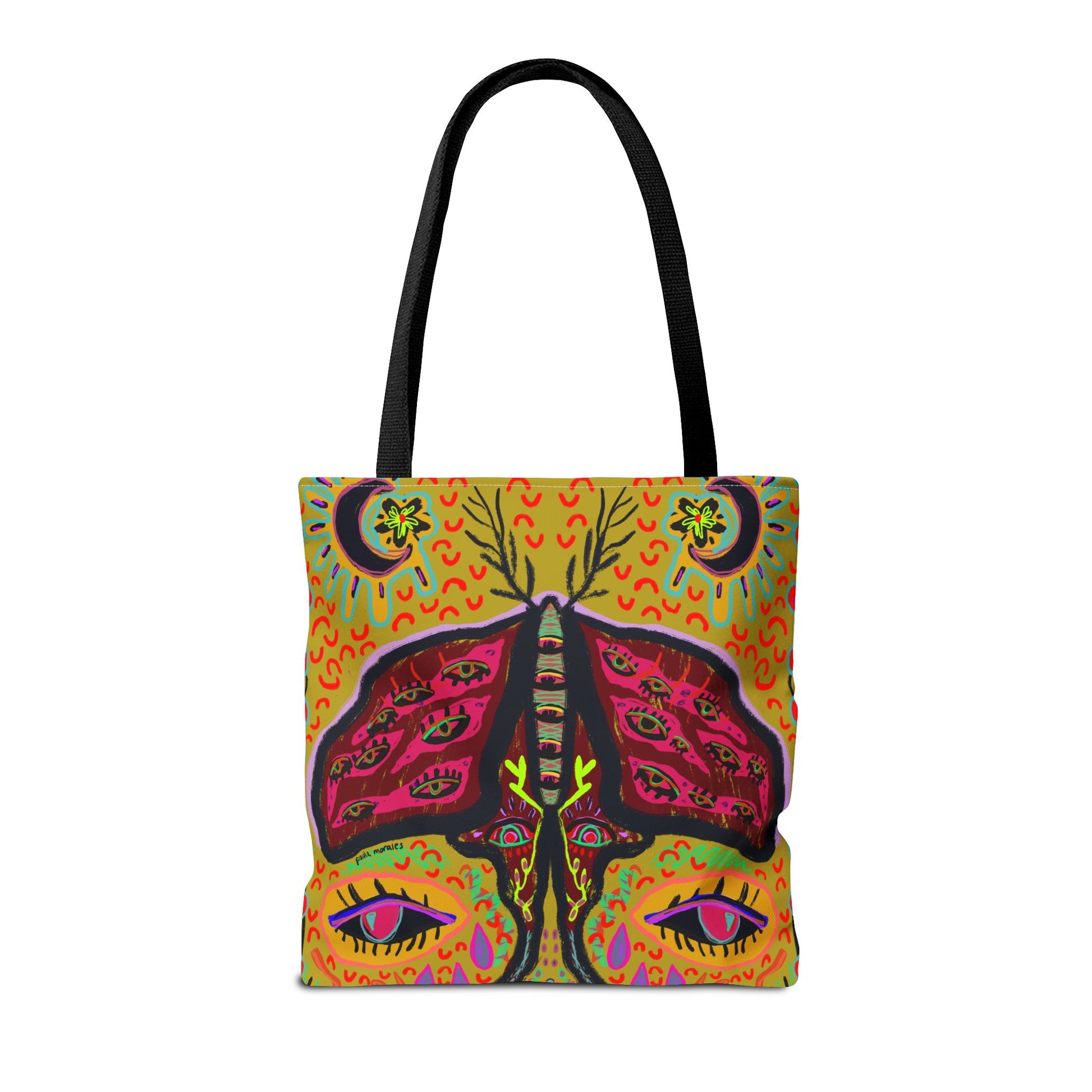 Custom-printed tote bag. Made with spun polyester, these bags feature double-stitched seams, cotton webbing straps, and nonwoven laminate lining for high-end durability. Your all-over print is created with dye sublimation for high end visuals.