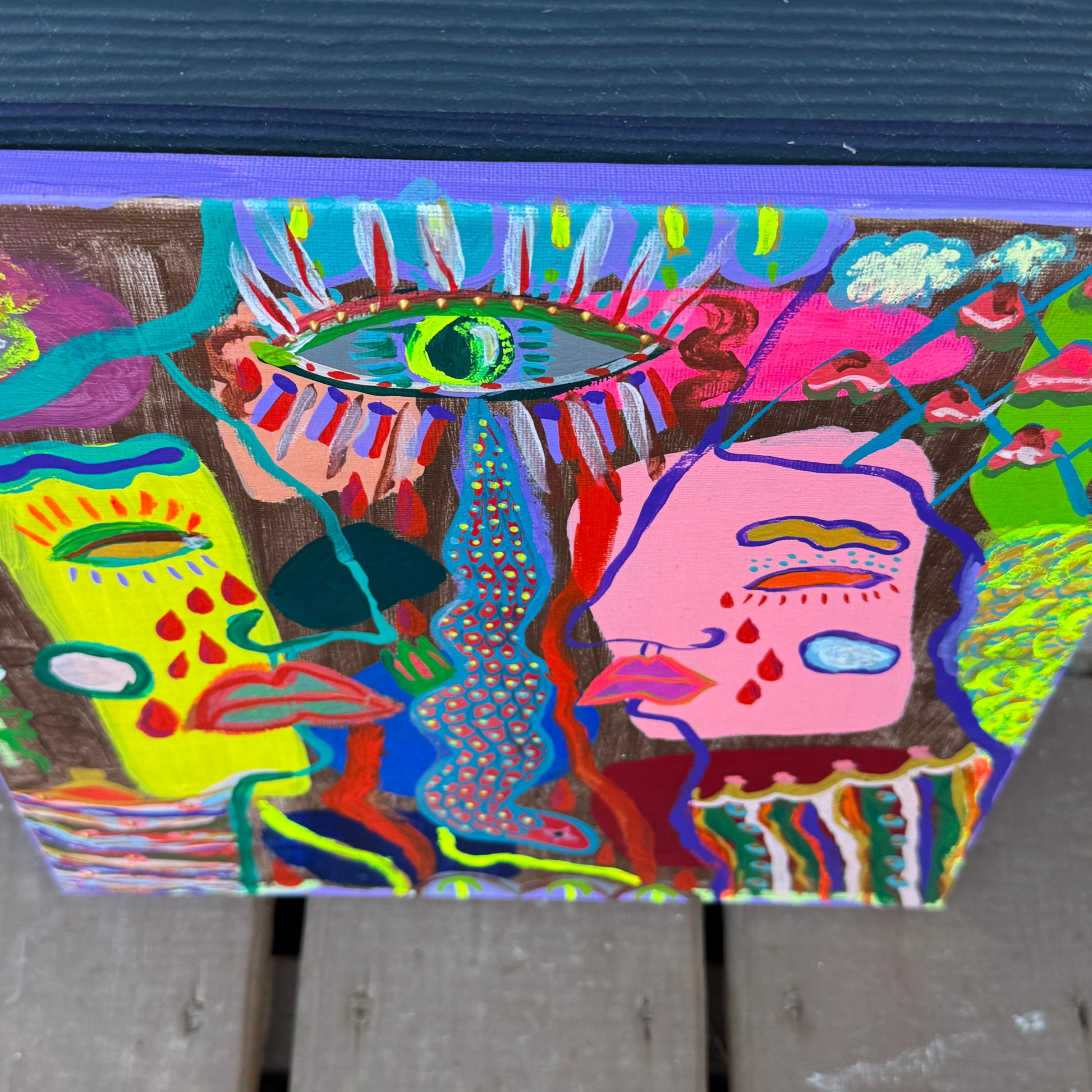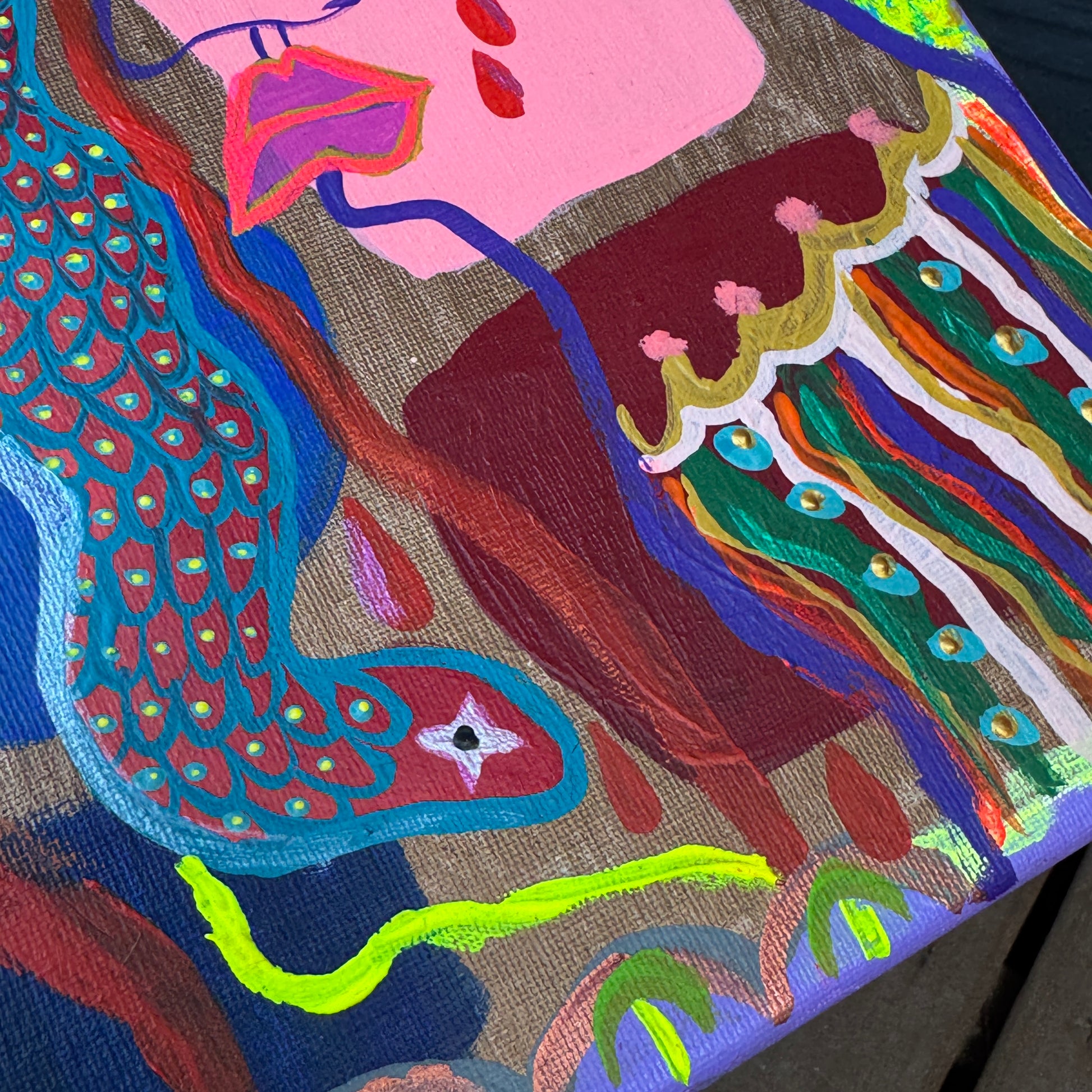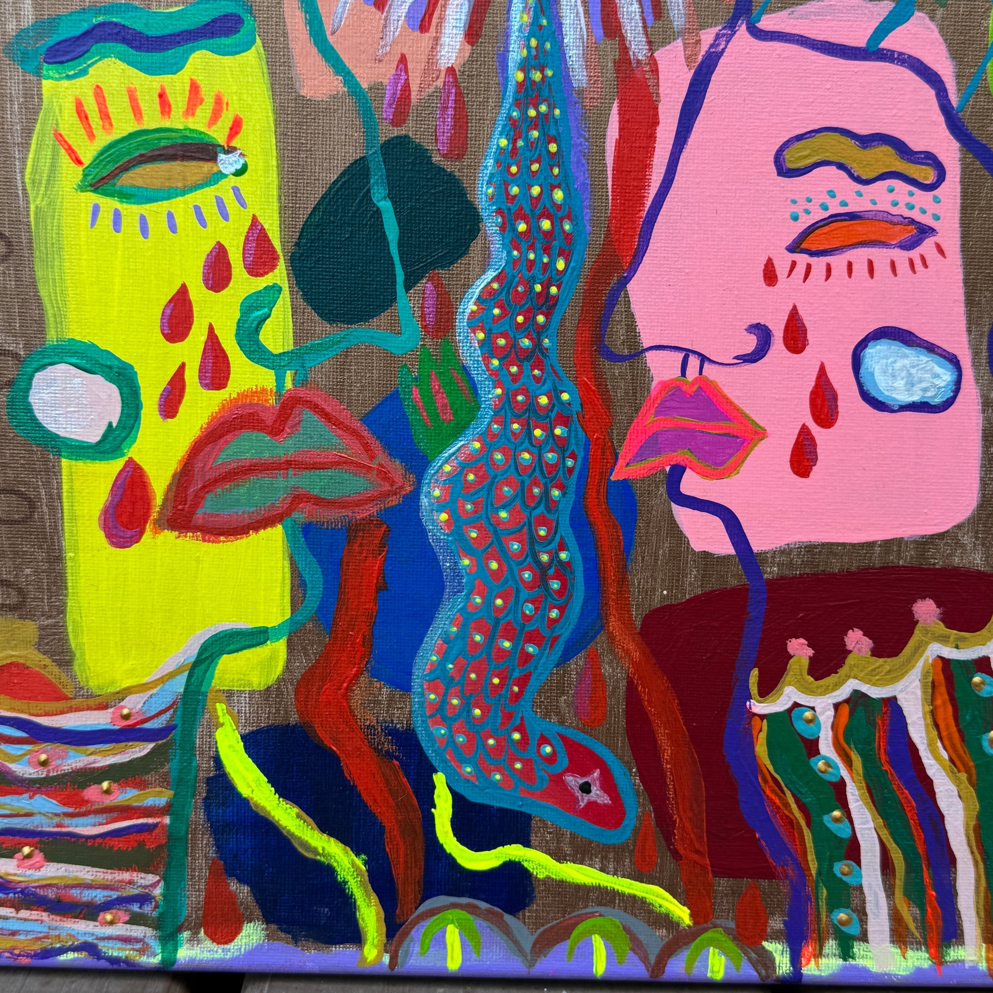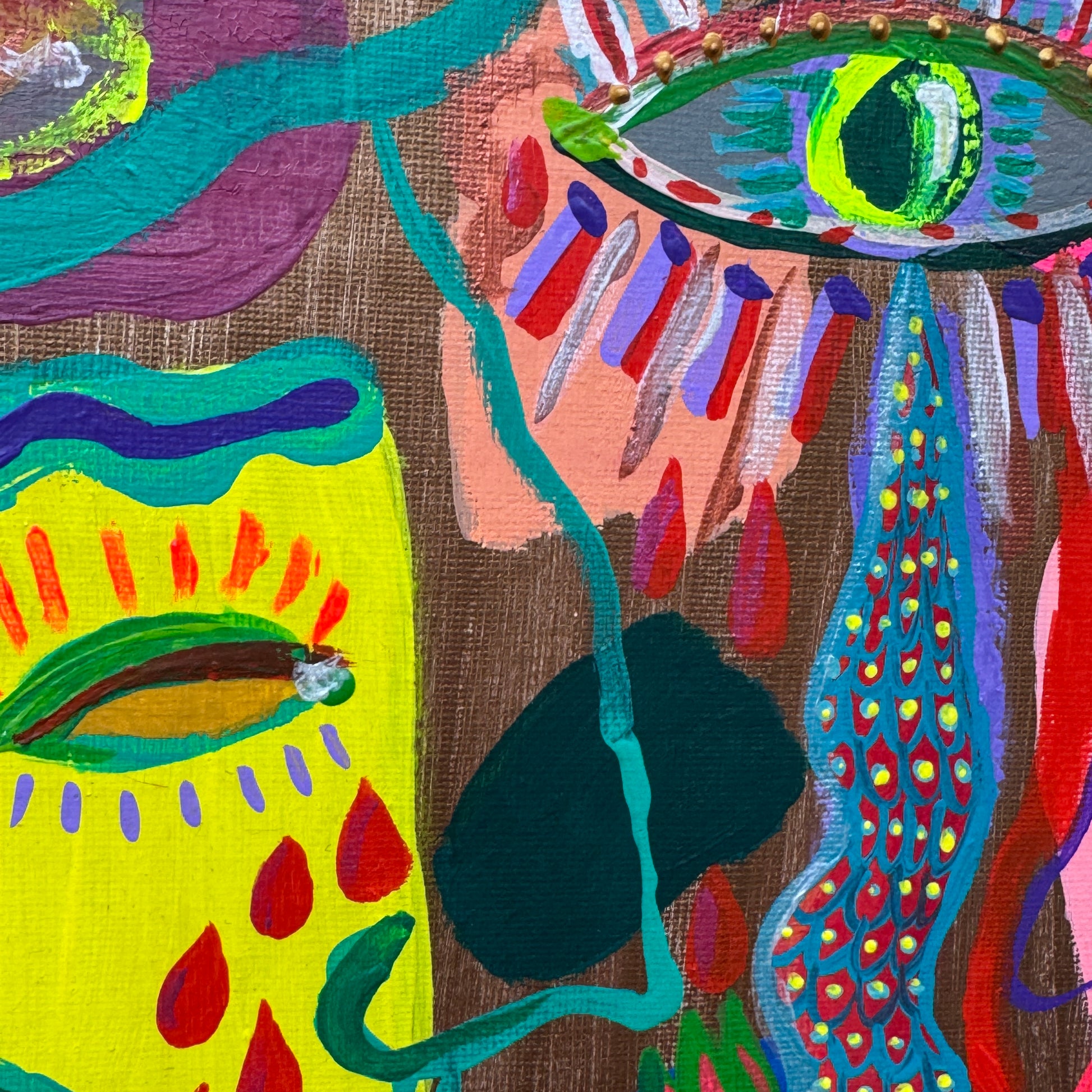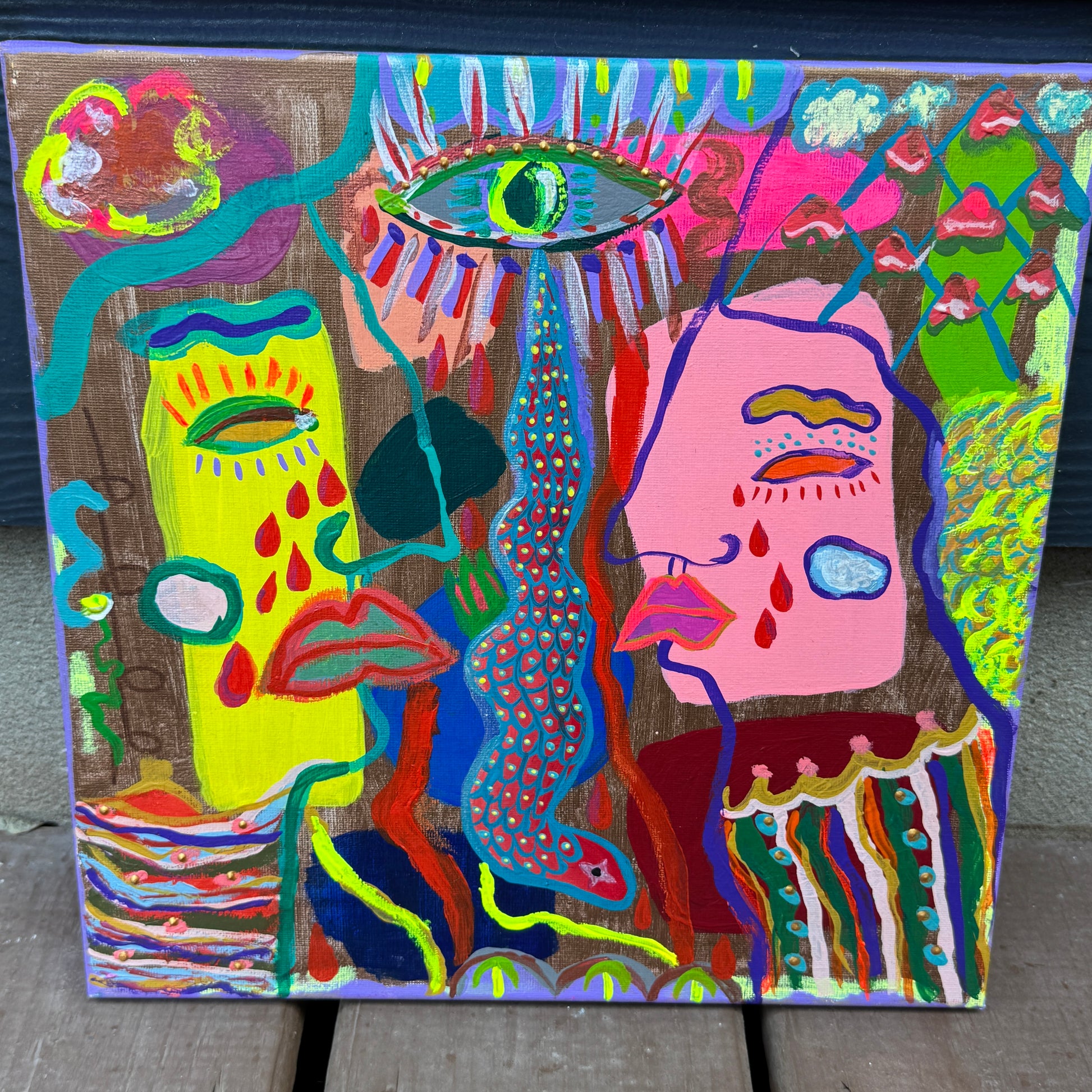 It’s emotional, unfiltered, and full of quiet storylines. Bright, layered acrylic.